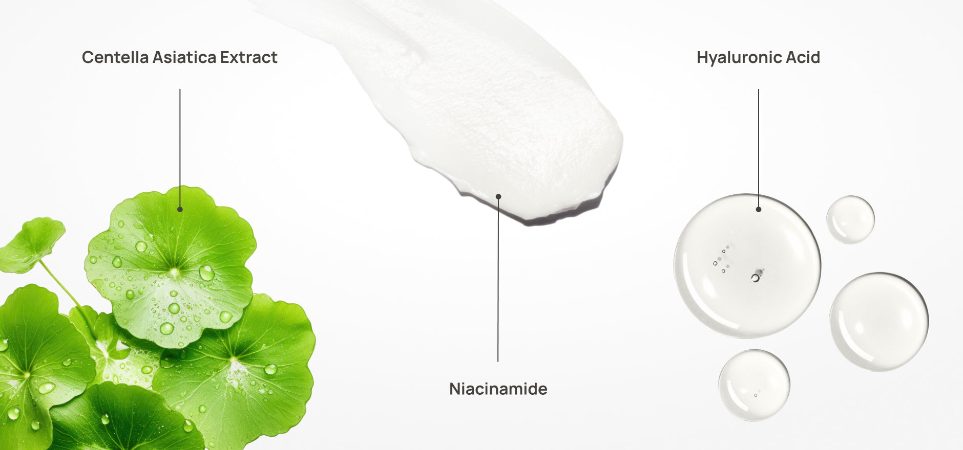 Aqua/Water/Eau, Glycerin, Glycereth-26, Niacinamide, Butylene Glycol, Centella Asiatica Extract, Sodium Hyaluronate, Dipropylene Glycol, Hydroxyacetophenone, Caprylyl Glycol, Polyglyceryl-6 Caprylate, Polyglyceryl-4 Caprate, Carbomer, Arginine, Xanthan Gum, Ethylhexylglycerin, Disodium EDTA, 1,2-Hexanediol, Dipotassium Glycyrrhizate, Hydrolyzed Hyaluronic Acid, Sodium Acetylated Hyaluronate, Fragrance/Parfum.