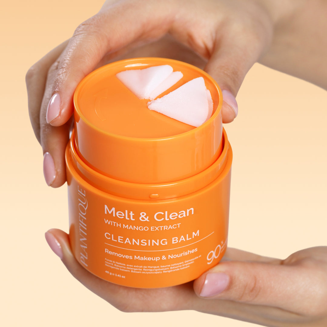 Start by using the Mango Cleansing Balm to remove makeup and impurities. Apply a generous amount to dry skin, massage gently, then emulsify with water to rinse.