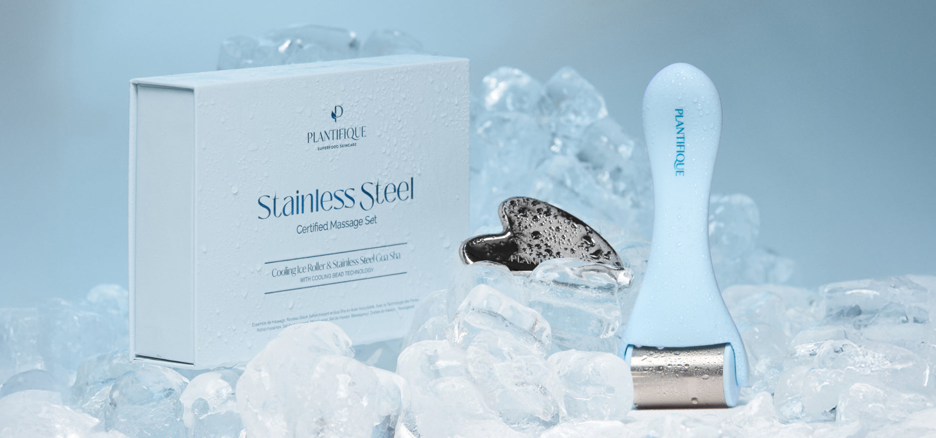 Experience the ultimate at-home cryotherapy routine with the Plantifique Ice Roller & Gua Sha Set, designed to soothe, sculpt, and refresh your complexion. Crafted from high-quality stainless steel, this duo combines the cooling benefits of an ice roller with the contouring power of a gua sha.