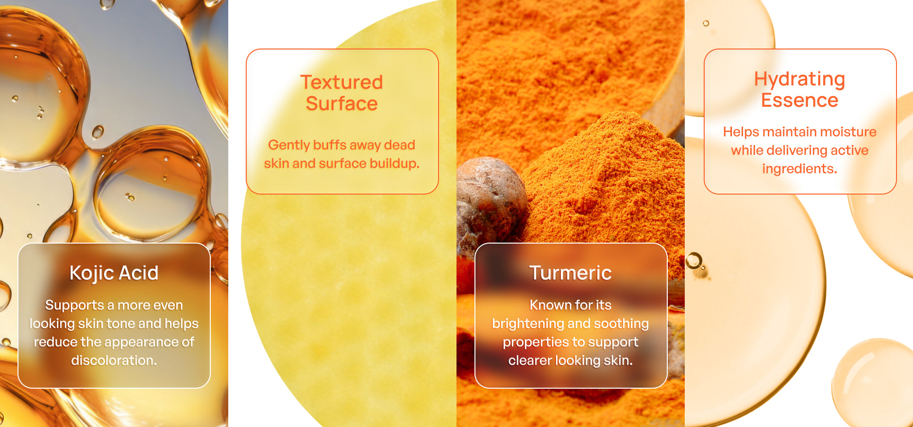 Infused with Kojic Acid and Turmeric for daily brightening and refinement.