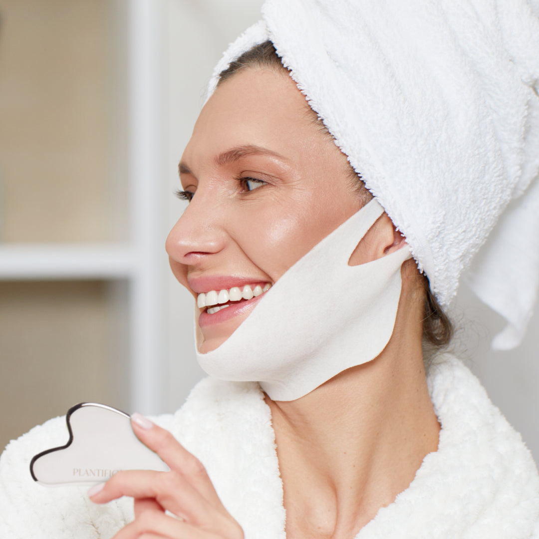 After using the Gua Sha, apply the V Line Lifting Mask to your jawline area, stretching it as needed. Leave it on for 15-20 minutes for enhanced hydration and a firmer, more sculpted look.
