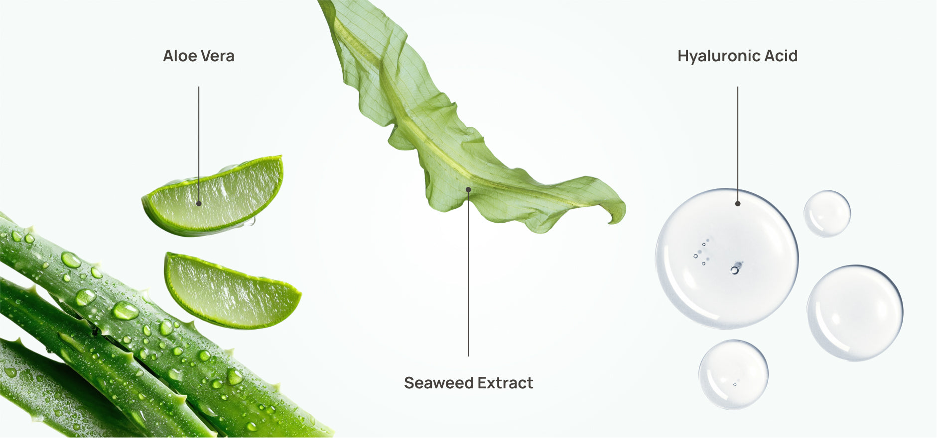 - Aloe Vera - Strengthens the skin barrier functions and deeply hydrates