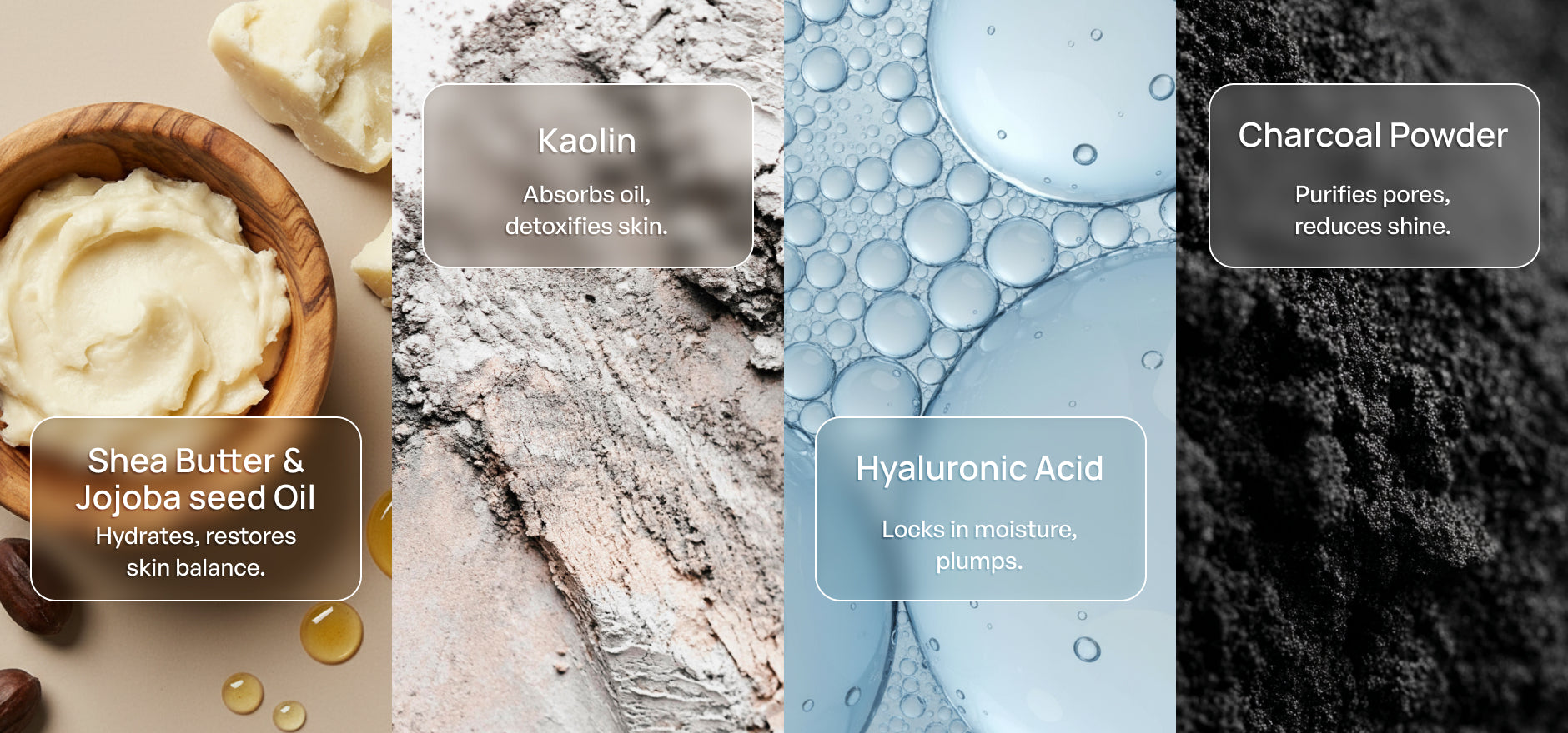 - Charcoal Powder - Known for its oil-absorbing properties, helping reduce shine and purify pores.