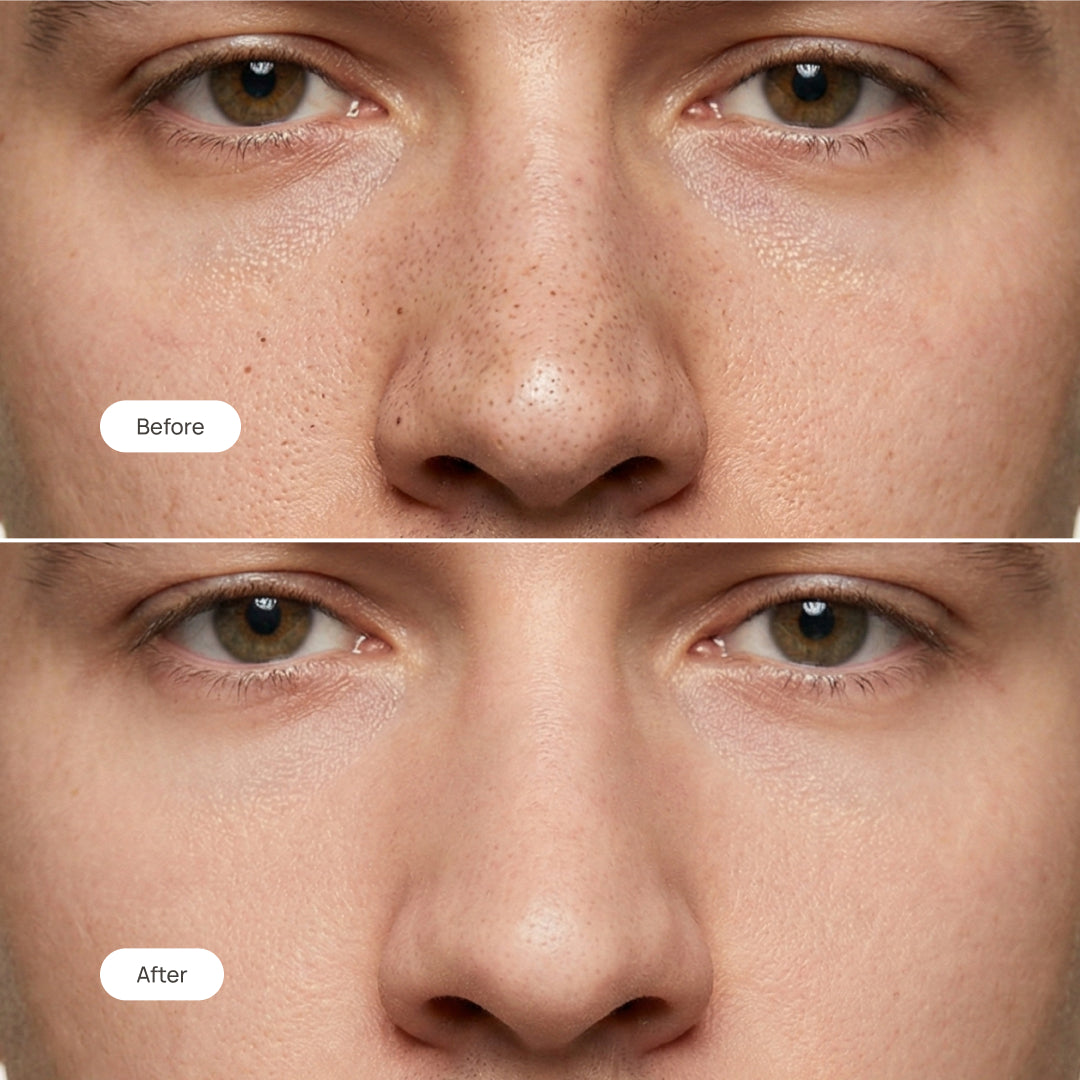 Pores appear less visible. Skin looks clearer and more balanced with regular application two times per week.